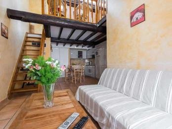 This is a lovely, light, modern, one bedroom apartment with a mezzanine and pleasant side views from the doors in the lounge and the bathroom window. It's located in the heart of Le Suquet (historic old town of Cannes) only 2 minutes walk to the nearest beach and 10 minutes walk to the Palais des Festival.